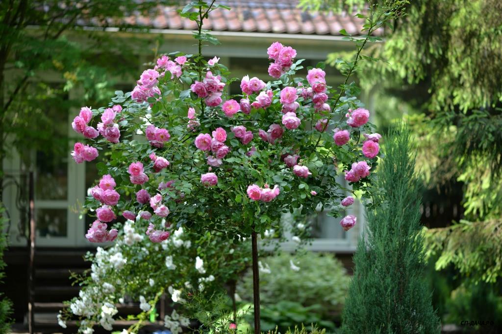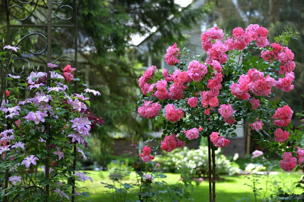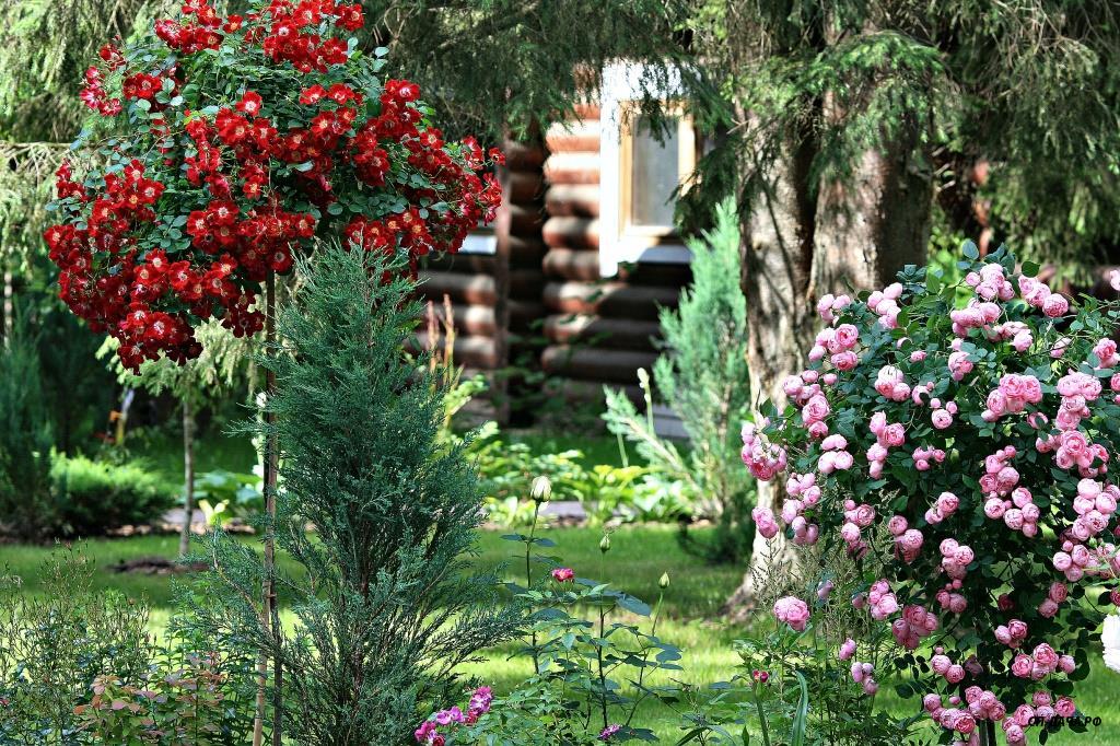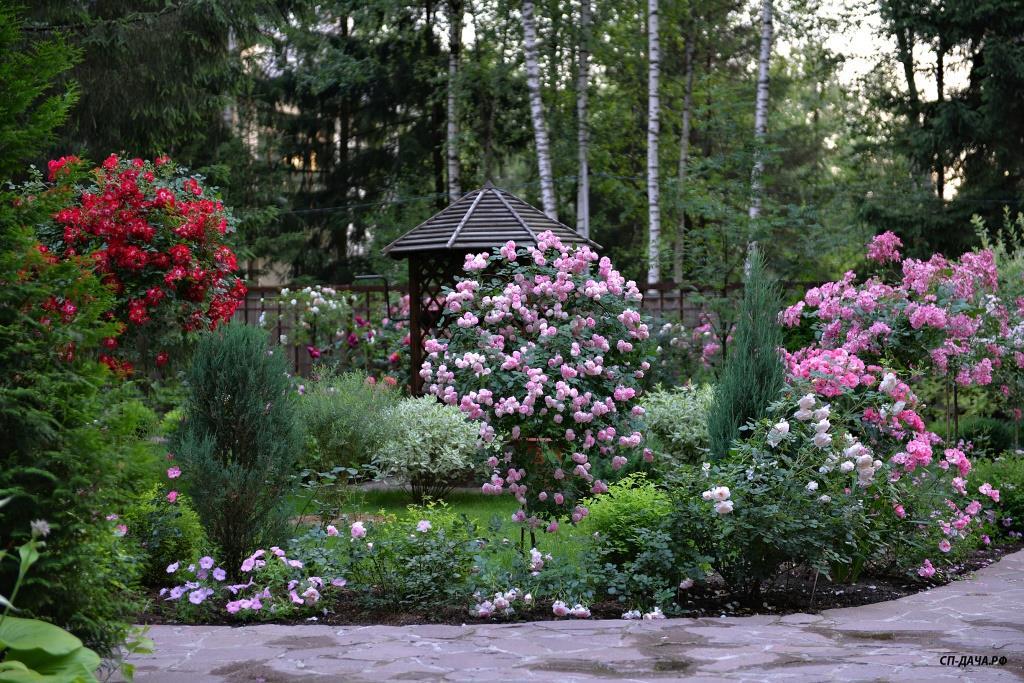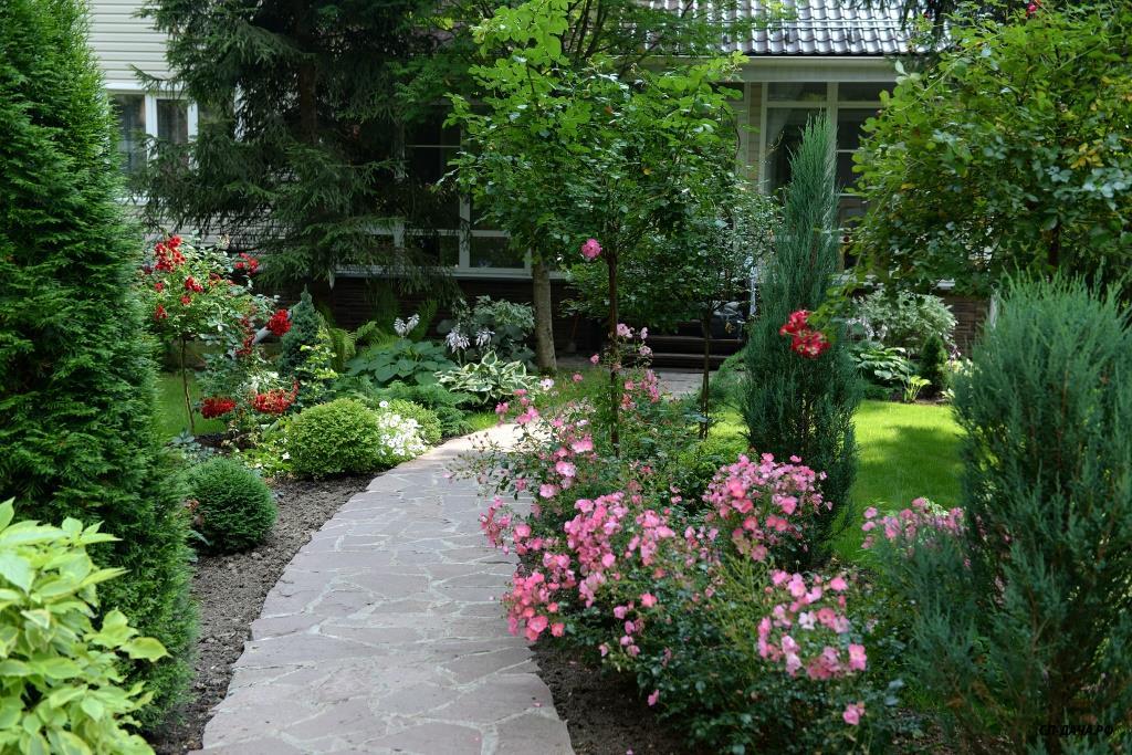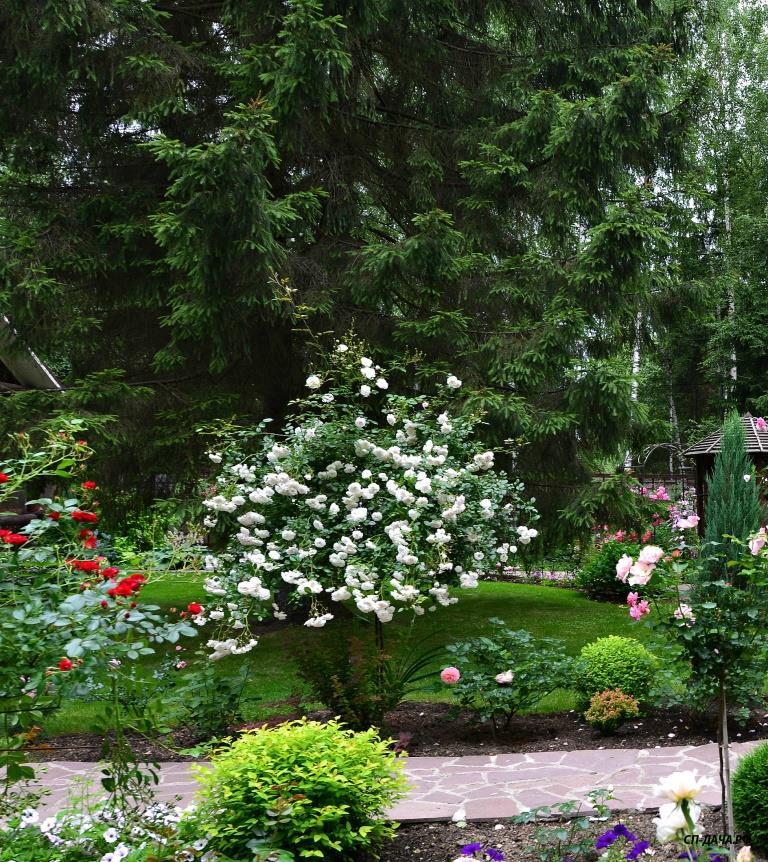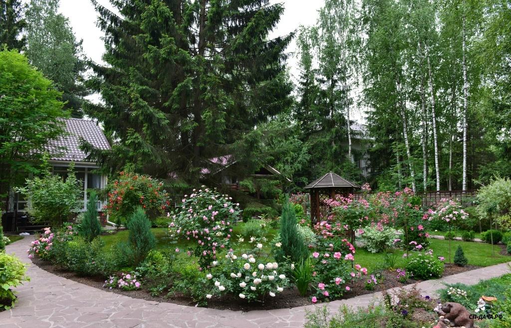 Ира, плана участка и сада не было изначально. На момент покупки участка на нем уже были беседка, баня, колодец и навес для машины. Место под строительство дома для нас было очевидным. Дальше просто связали между собой все строения дорожками. Пришлось отдать большой кусок земли под въезд-стоянку для машин из-за неправильного расположения въезда под навес во дворе. Если бы навеса не было изначально, я бы поставила его не вдоль забора, а перпендикулярно, с выездом прямо на улицу, а не через двор. Когда дорожки были готовы, образовались газонные зоны, на которых я просто оставила места для посадок декоративных растений, каких именно, я еще не знала... Просто понимала, что в одном месте - хочу прикрыть дом от лишних взглядов с улицы, в другом - необходимо прикрыть соседский забор, в третьем - замаскировать канализационные люки...Исходя из этих задач я и подбирала растения, рисуя разные композиции на фотографиях в компе...Точно знала, что не буду сажать монопосадки из роз, так как для этого нет достаточно места, и сразу рассматривала варианты посадок роз с компаньонами...IrinaKom писал(а):...Вы свой сад сразу такой планировали, или это со временем?