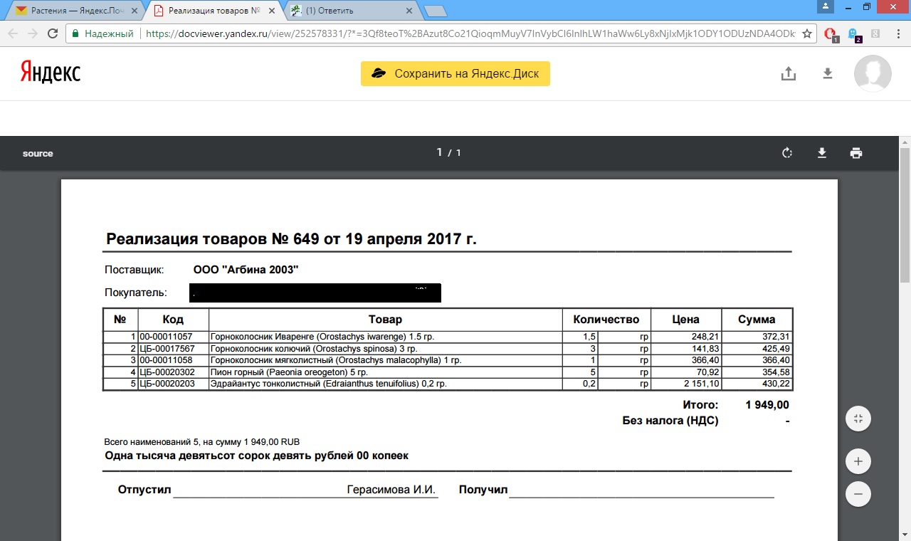 Мне горноколсников по половине, пиона 20 шт. Только ко мне пересылка дороже.Ягеллонка писал(а):Ну вот, месяц ждала - дождалась семена из Агбины: Если есть желающие, могу поделиться.Ягеллонка писал(а):Я сегодня уже отправила в Агбину заказ, там все три горноколосника из имеющихся сейчас в прайсе. Выполняют они заказы очень-очень неспешно. Причем частенько по многим позициям отказывают, т.к. они заканчиваются в процессе заказа. Теперь буду ждать ответа как соловей лета.Нюшша писал(а):В 2015 ещё в прайсе был Горноколосник Горового (Orostachys gorovoii) место обитания Дальний восток ... Зимостойкость -31.