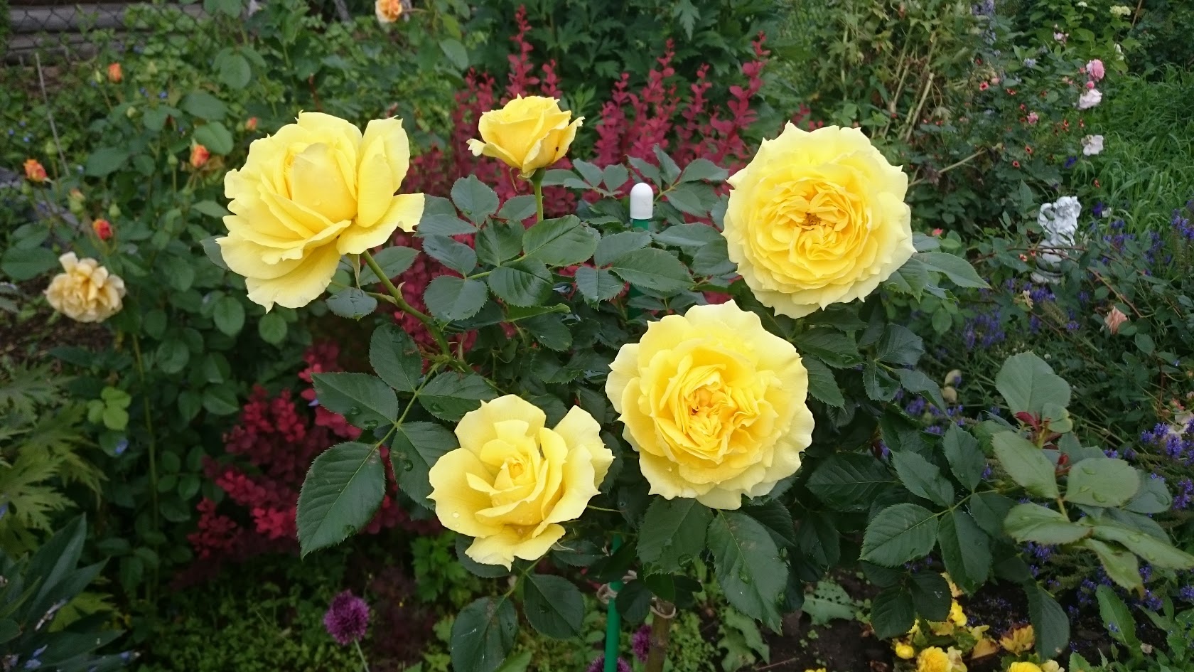 Девочки, на ВС читала, что предположительно роза China Girl плохо будет смотреться на штамбе, но рискнула в прошлом году и приобрела себе это счастье, о чем вообще не жалею. Это постоянно цветущий шарик с огромными желтыми цветами, которые еще и не выгорают, дождь, солнце держит отлично, считаю ее одним из самых удачных своих приобритений. На бардак внимание не обращать, прошлый год был тяжелым