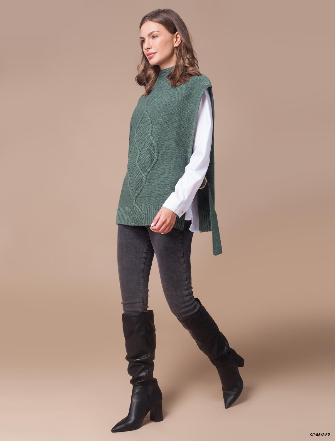 жилет с застежкой оливковый 46р. из осенней коллекции