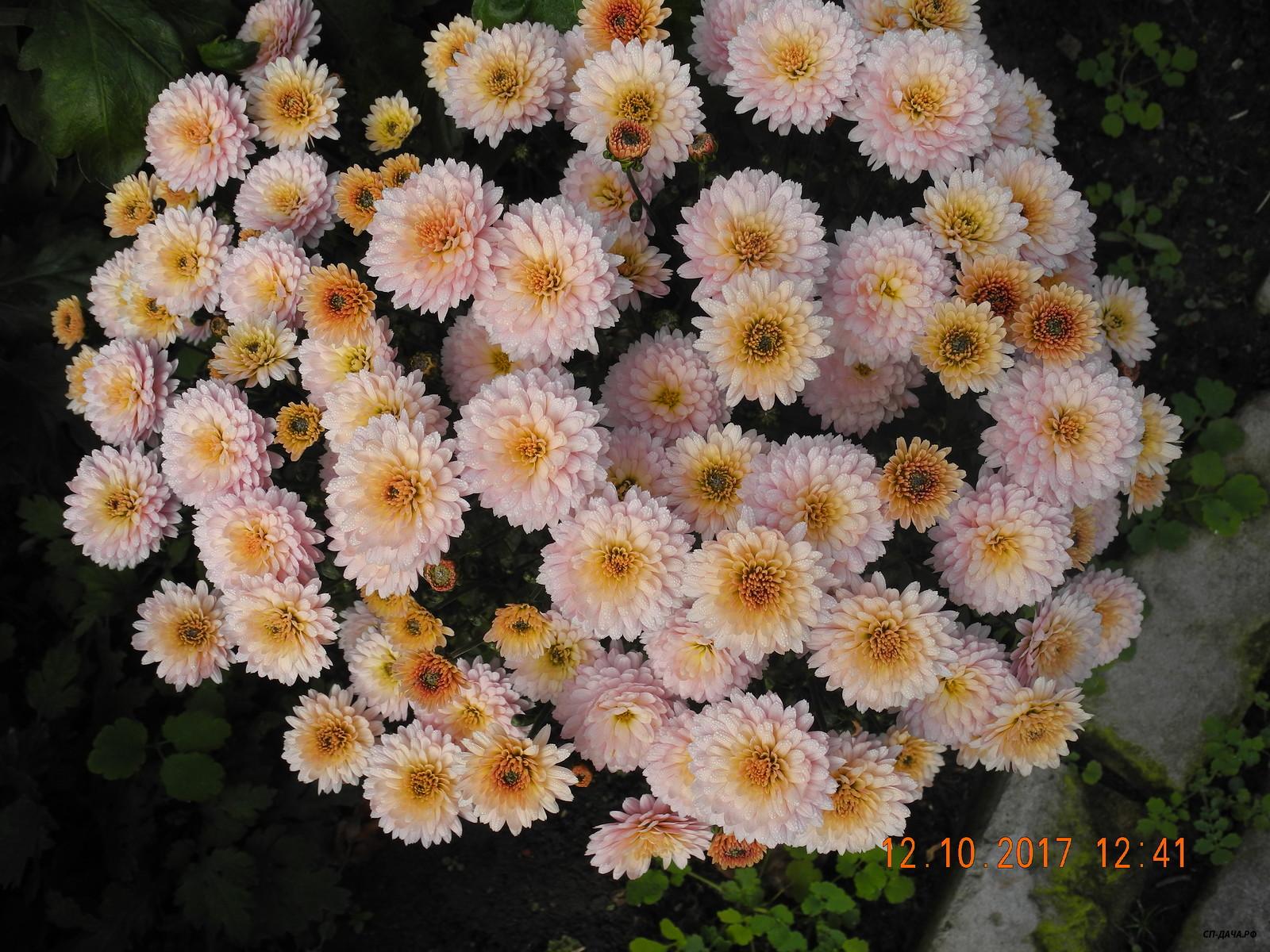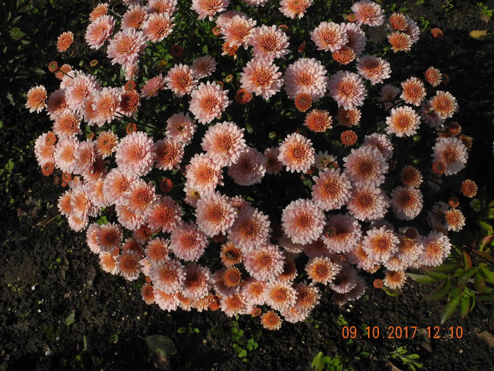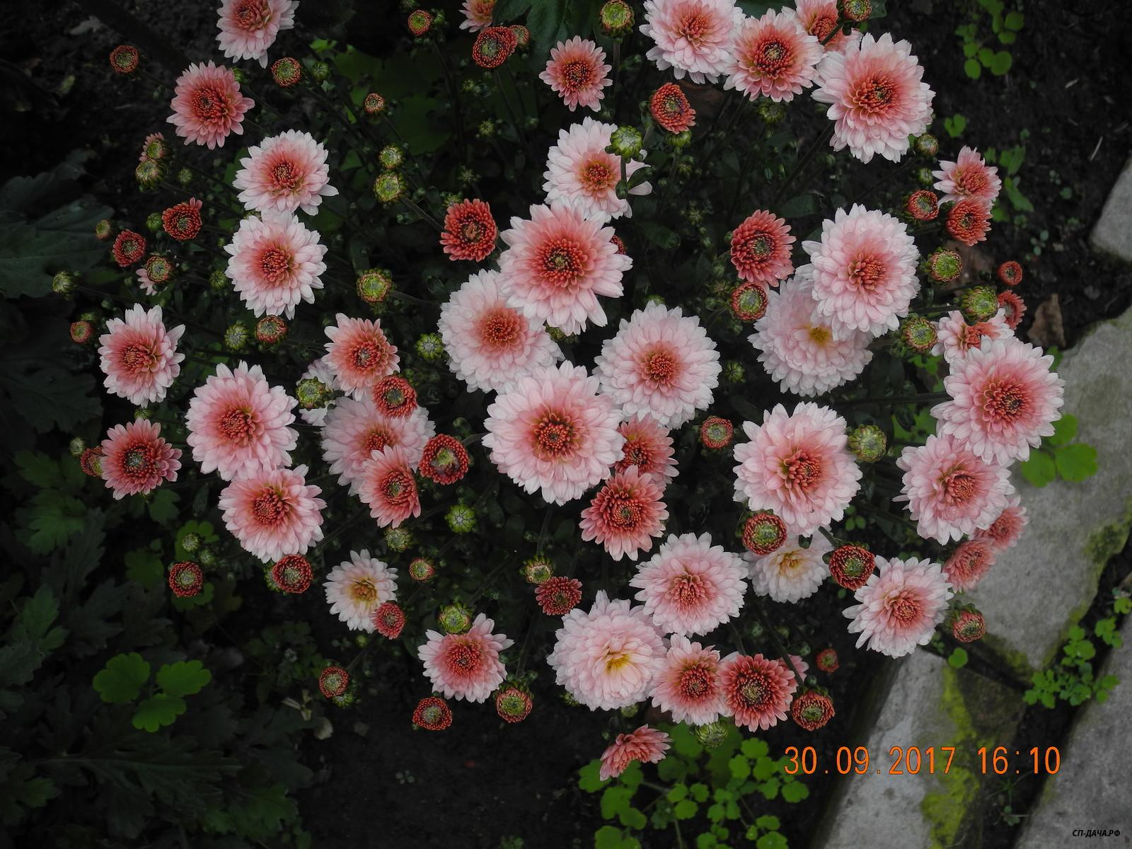 К сожалению, 1 октября был заморозок и распустившиеся цветки хризантем существенно пострадали и несколько потеряли в декоративности (фоточек по этому не будет). Бутоны и цветки в полуроспуске не пострадали и дальше все будет зависеть от погоды.