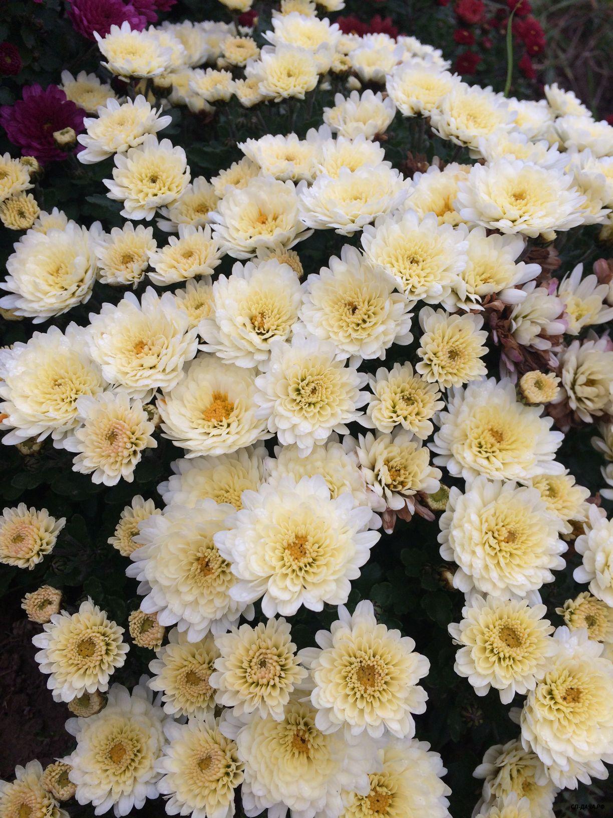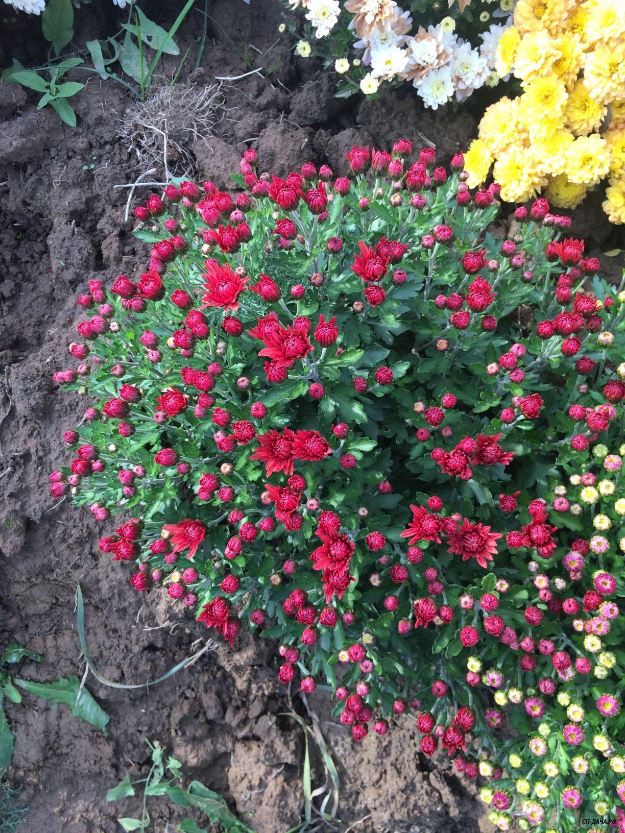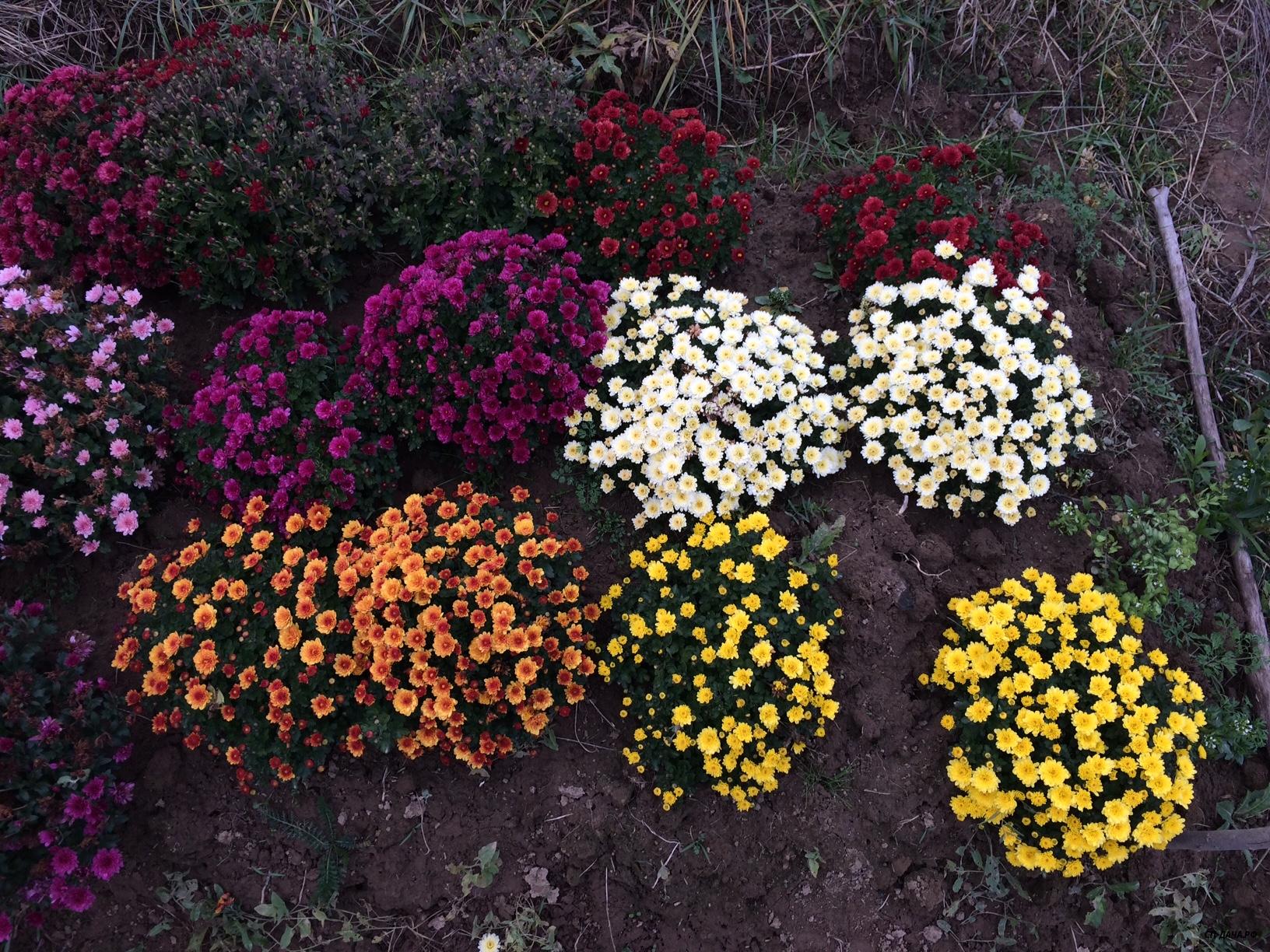 К сожалению, 1 октября был заморозок и распустившиеся цветки хризантем существенно пострадали и несколько потеряли в декоративности (фоточек по этому не будет). Бутоны и цветки в полуроспуске не пострадали и дальше все будет зависеть от погоды.