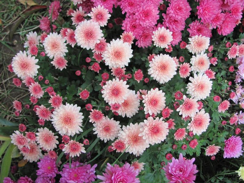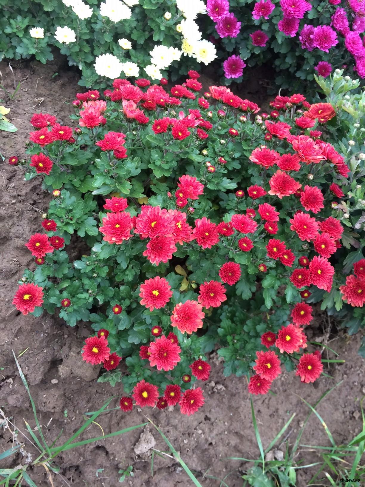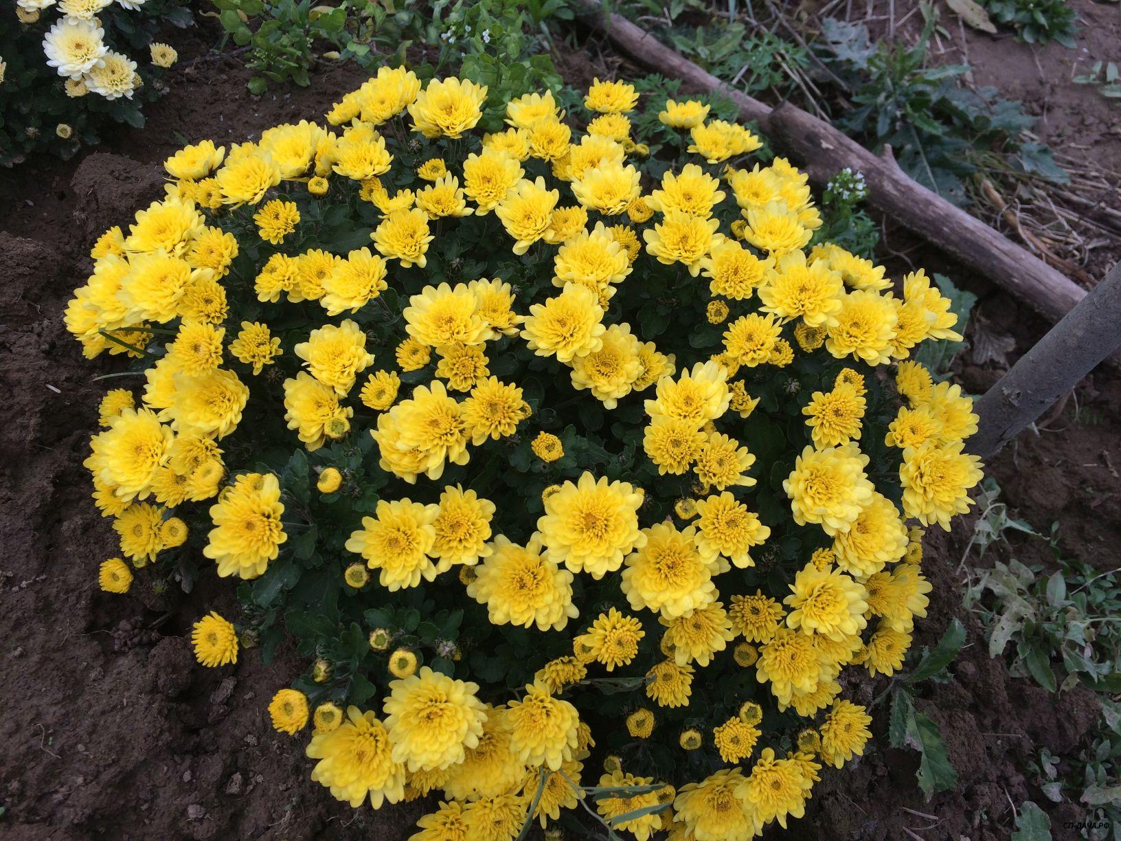 Растет небольшим шариком, и, в отличие от хризантем, не боится заморозков даже в состоянии полного роспуска цветов. Да и зимует без всякого укрытия.