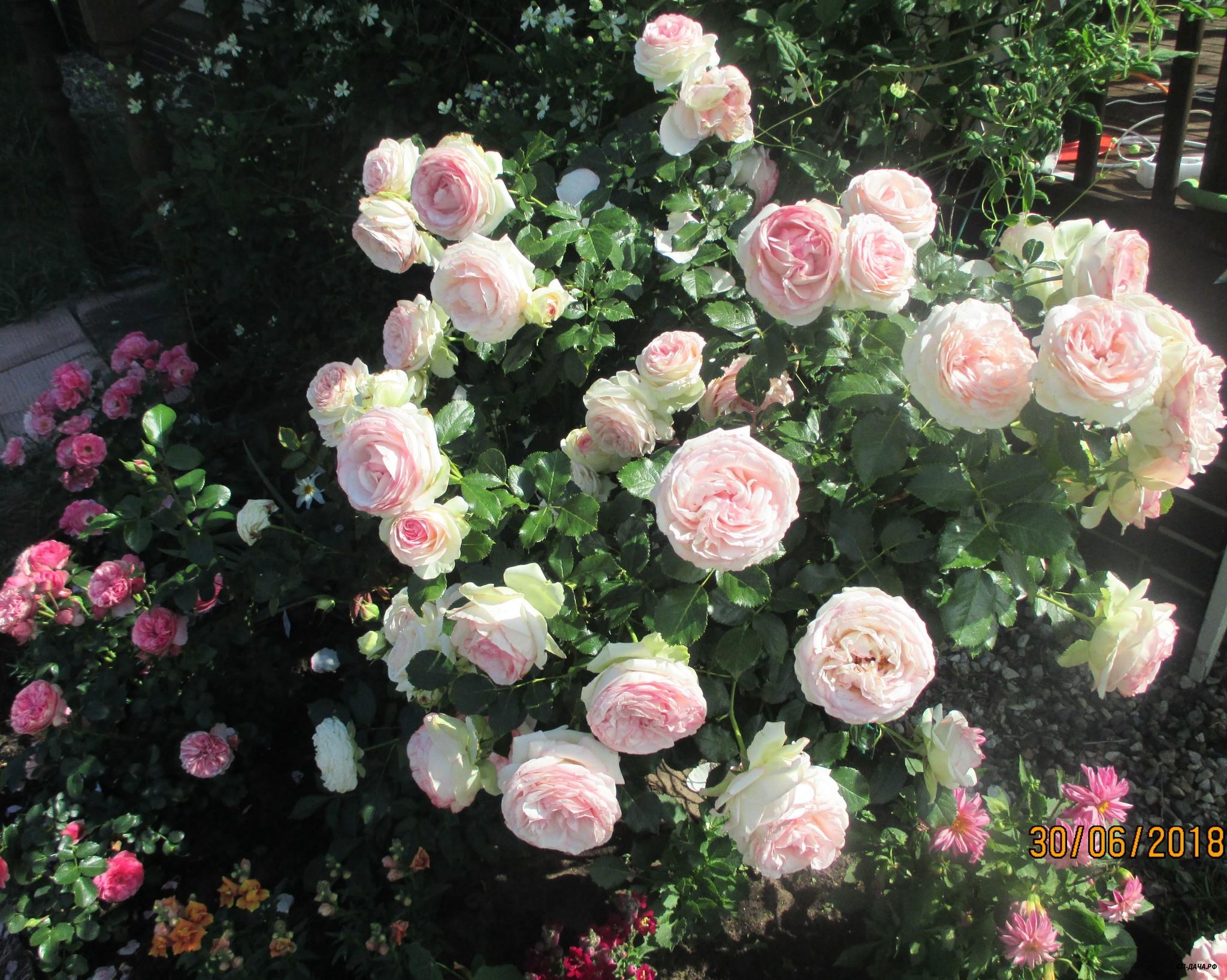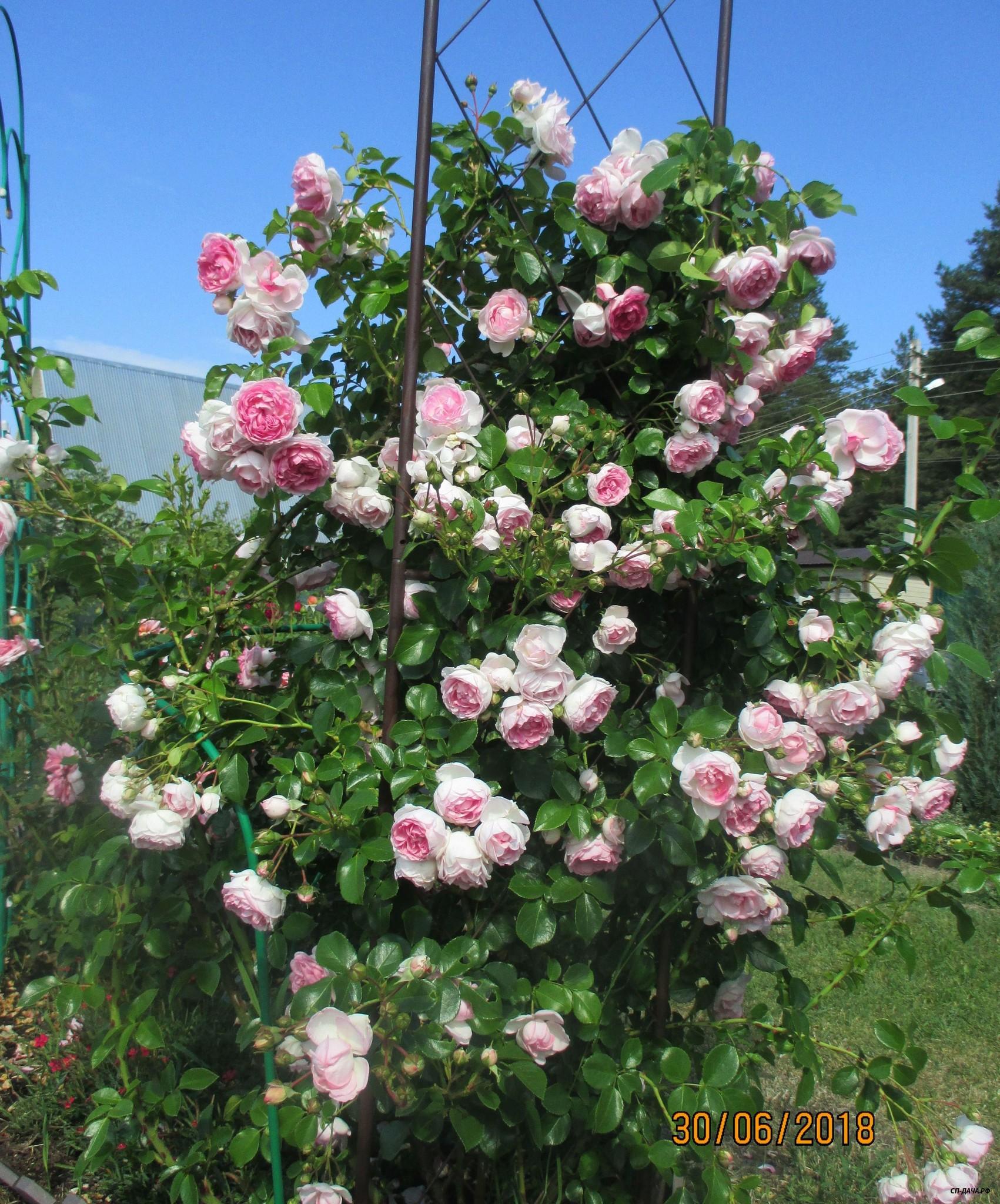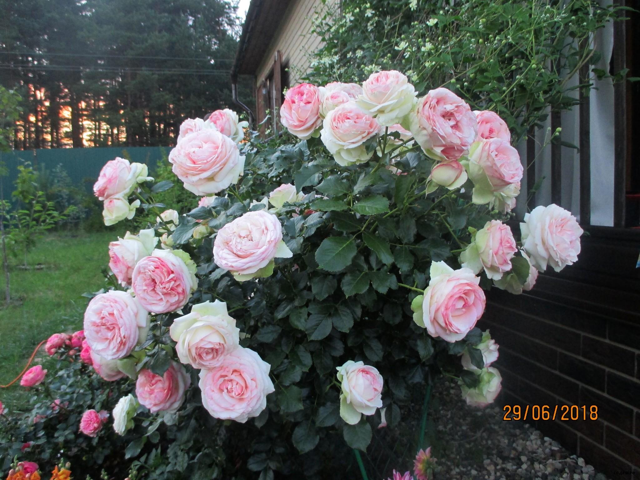 Мой любимый Pierre de Ronsard, к сожалению зимой 2017 его сломало снегом, сама виновата, но, после кардинальной стрижки цвел очень даже