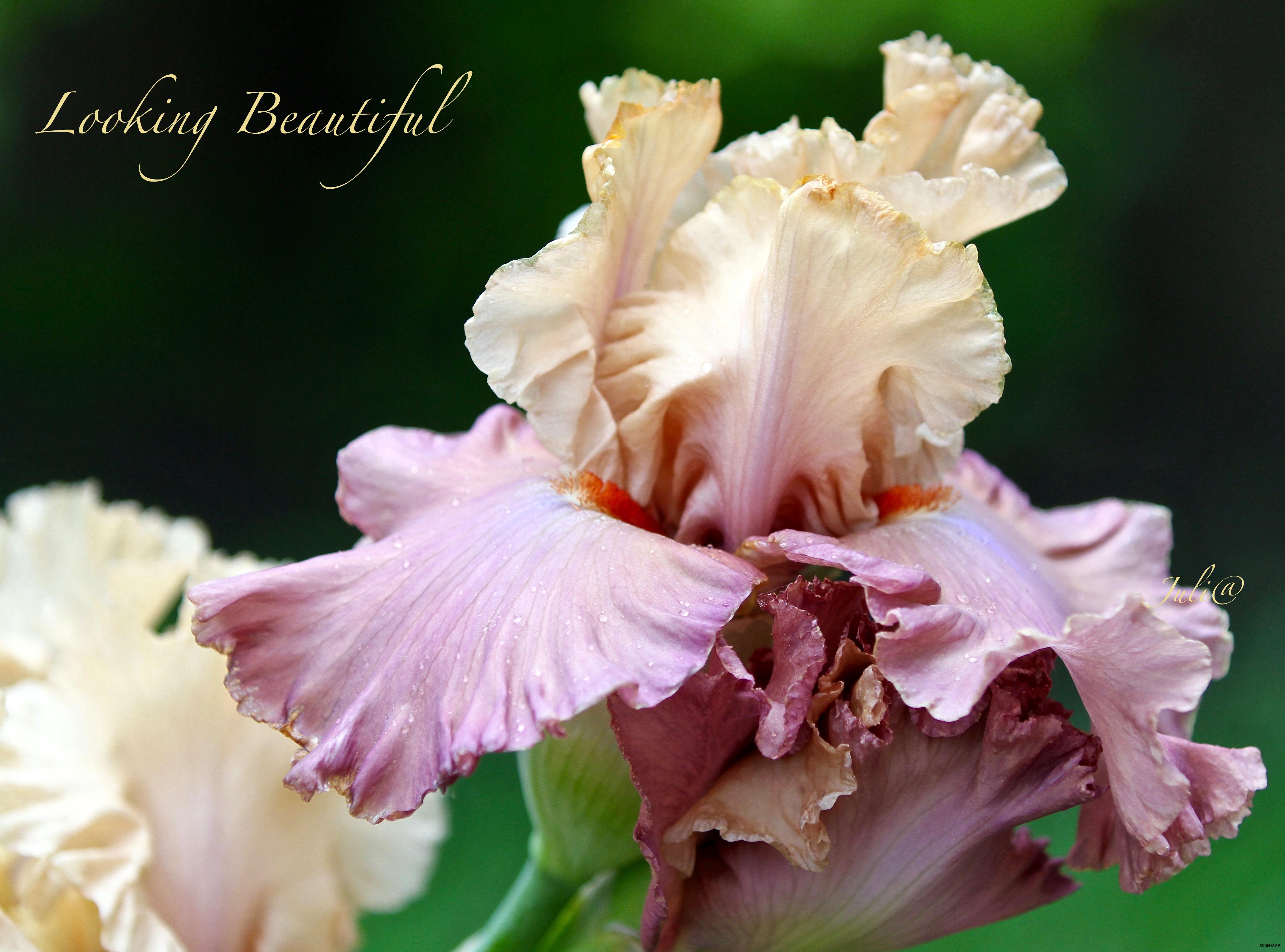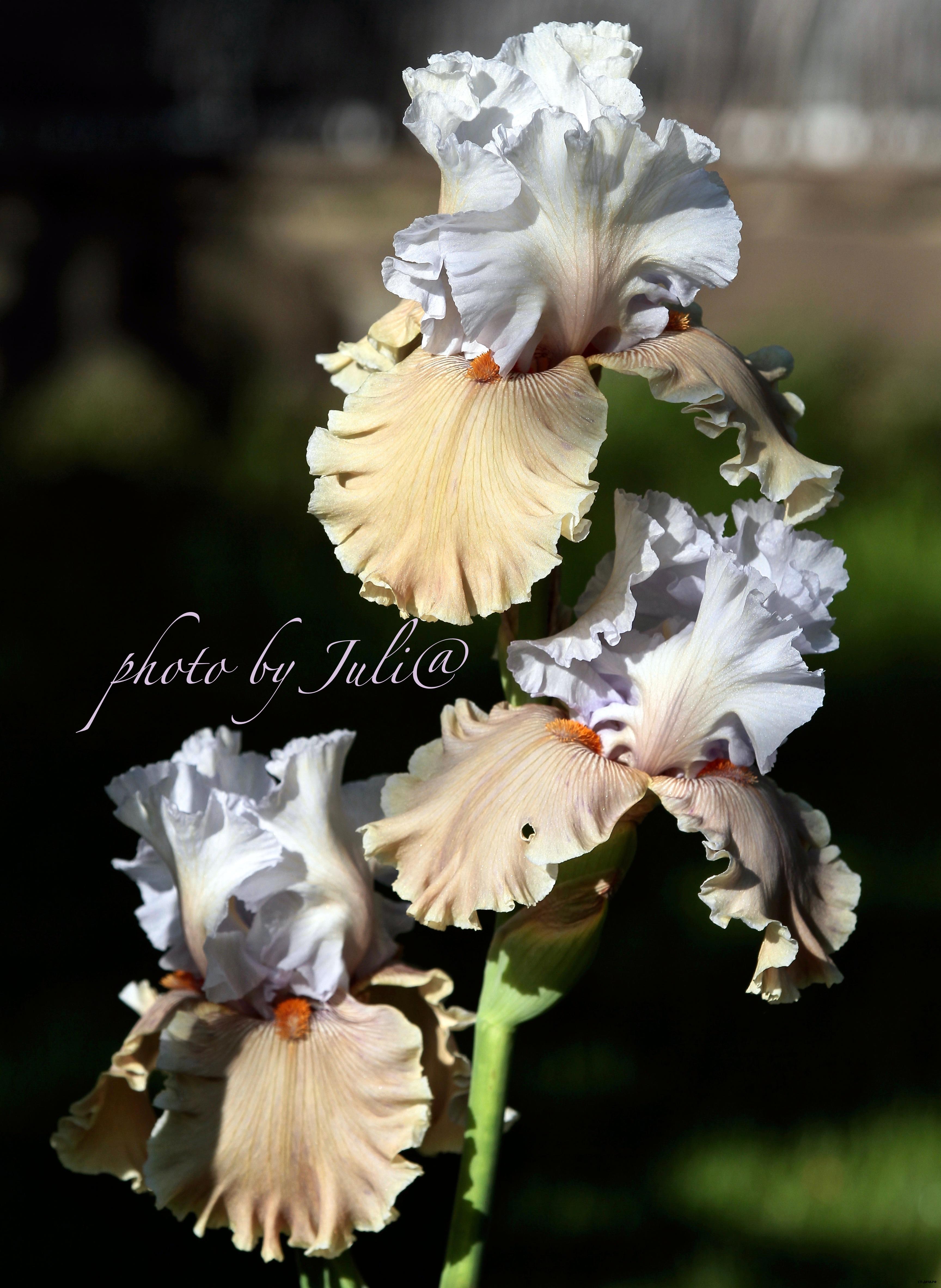 Сливочно-бежевые стандарты. Лавандовые фолы с темно-фиолетовым смешанным участком вокруг бородки. Удивительный цвет!