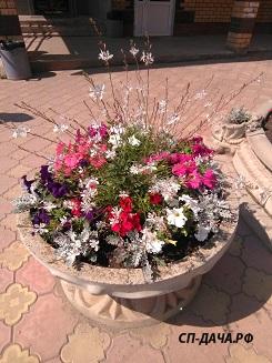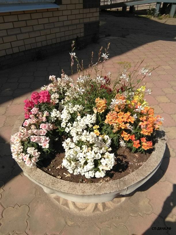 Вот мои клумбы: в центре - гаура белая, вокруг петунии Дримс и Суперкаскад (миксы), цинерария, отдельно - львиный зев Твинни (тоже микс). Все цветы из СП ЕТК-весна 2022.