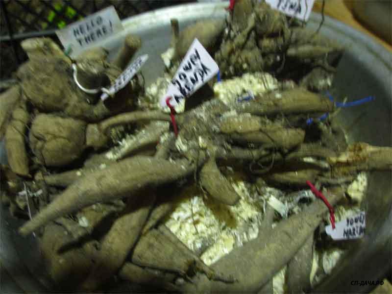 Клубни выкопала, отмыла, хорошо (полностью просушила), завернула в несколько газет, сложила в картонную коробку, хранила в помещении, где всю зиму было +5, весной были сильно пересохшие, так и не проснулись после замачивания и посадки, при посадке шейку землей не засыпала. Спасибо.Nadin_K » 04 фев 2018, 22:43 писал(а):Хотелось бы знать какие у Вас условия для хранения - подпол, балкон и т.д. Для хранения в комнатных условиях - клубни надо хорошо очистить, удалить все тонкие корешки, желательно разделить на деленки. Вымочить в Витаросе, Максиме, Сушить хорошо сутки в холодном месте. И только потом сложить в пакет и засыпать с головой опилками. Хранить в самом холодном месте. Периодически проверять. Но это так, навскидку. . Надеюсь продержимся в этой теме до осени и тогда продолжим разговор о хранении.