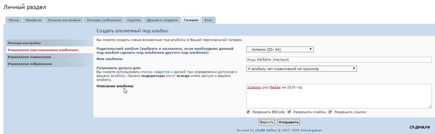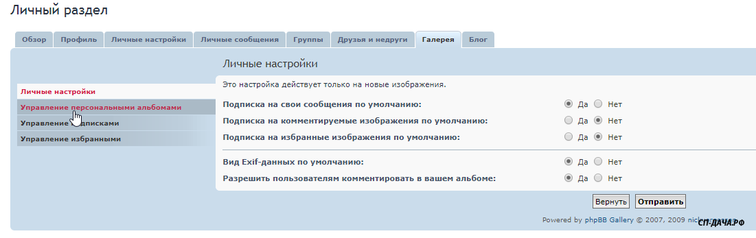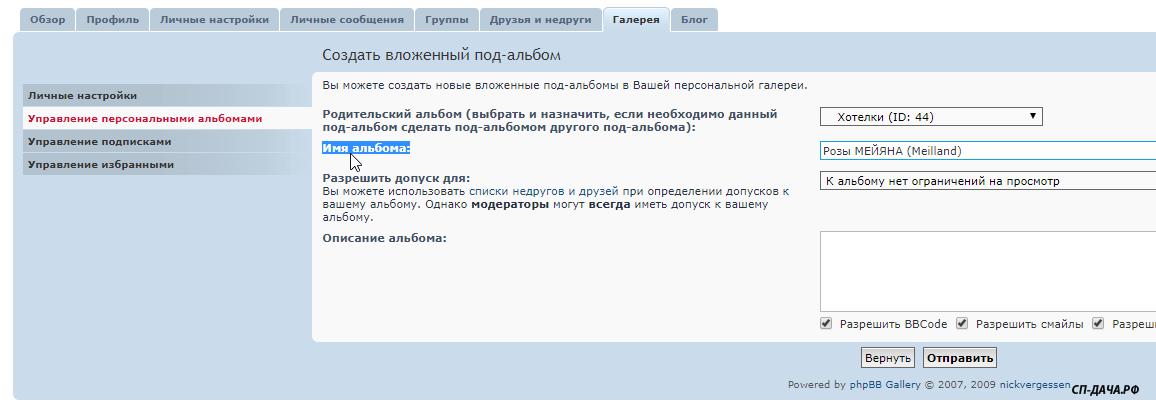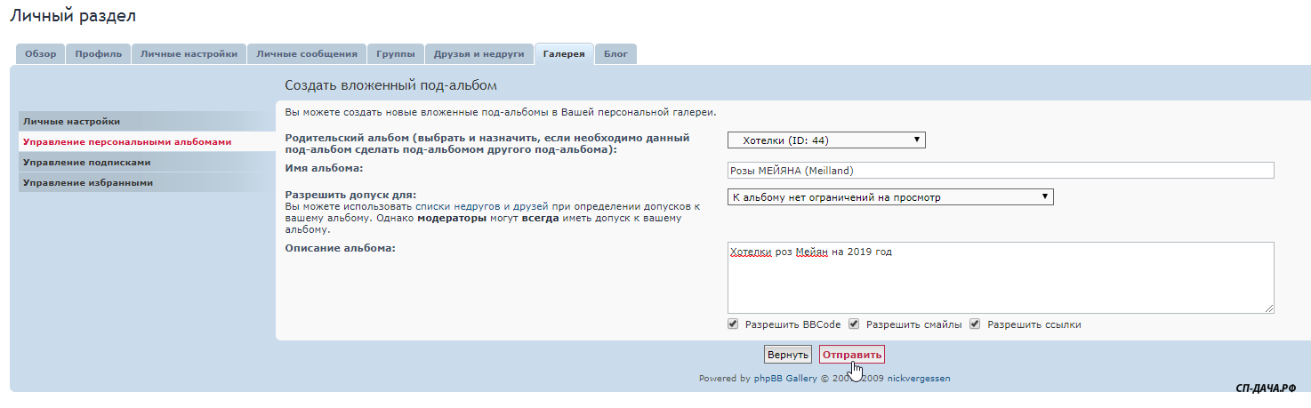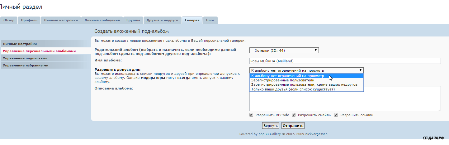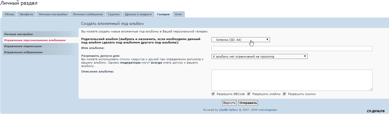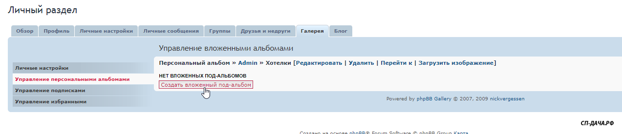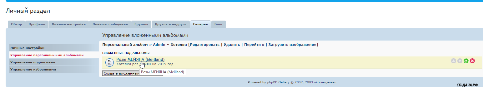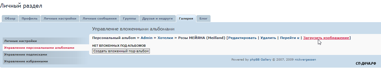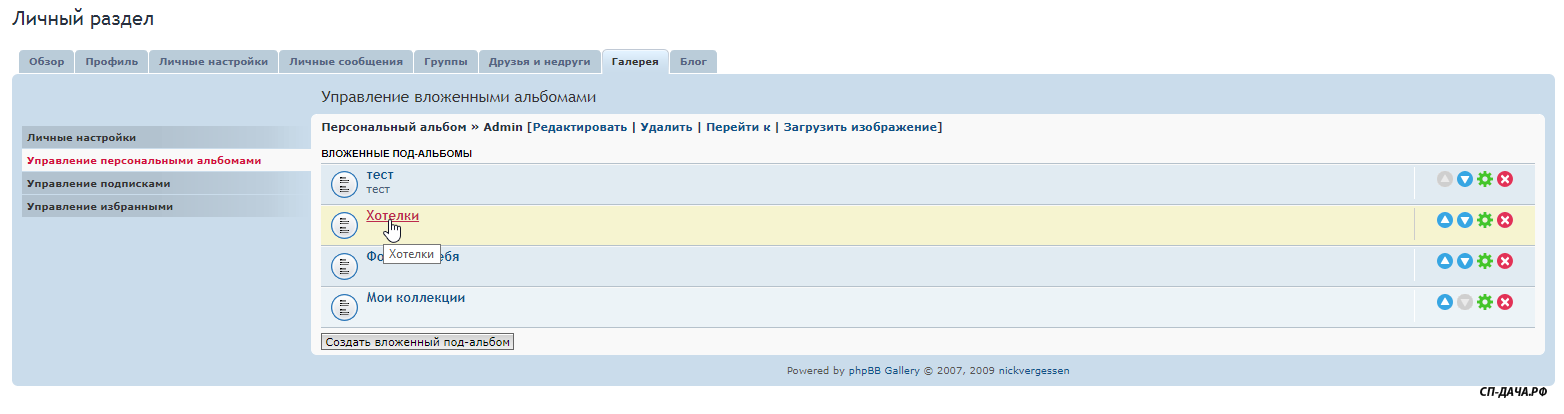 Заходите в Личный раздел - Галереи - Управление персональными альбомами