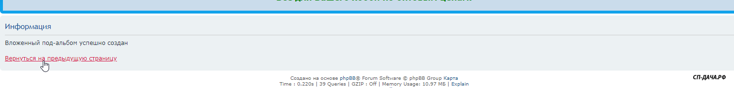 Создаем вложенный под-альбом ( можно и не создавать, прямо туда загружать, но по папкам Вам будет удобнее).