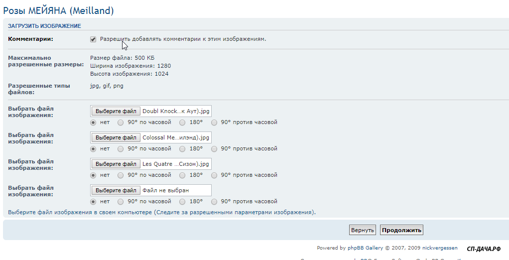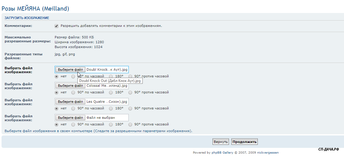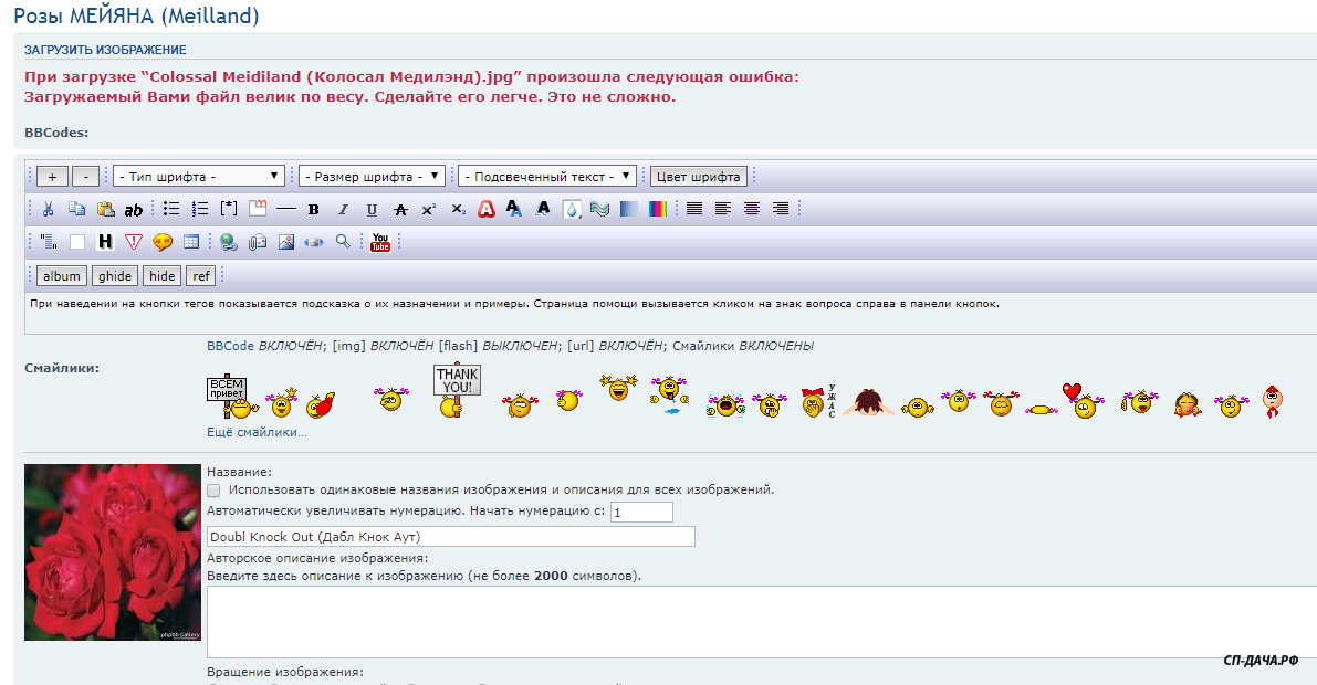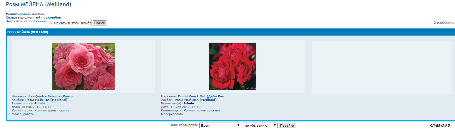 Розы загрузились в фотоальбом уже под названиями, т.к. были подписаны