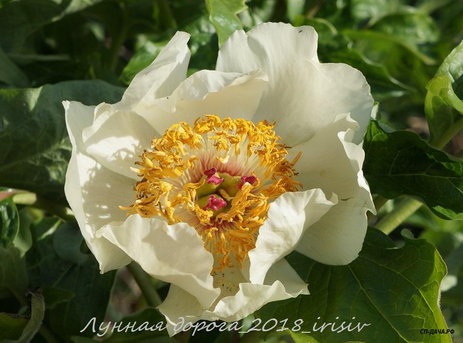 Гибрид, очень ранний, цветы небольшие10 см, простые, необыкновенного желтоватого цвета, весь светится, красивые тычинки с ярко-карминными рыльцами простой, куст очень компактный, с крупными резными листьями, высота 70 см. Аромат слабый.